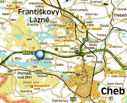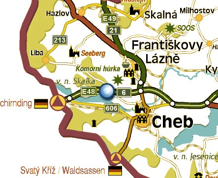 Mapa regionu okolo Chebu: